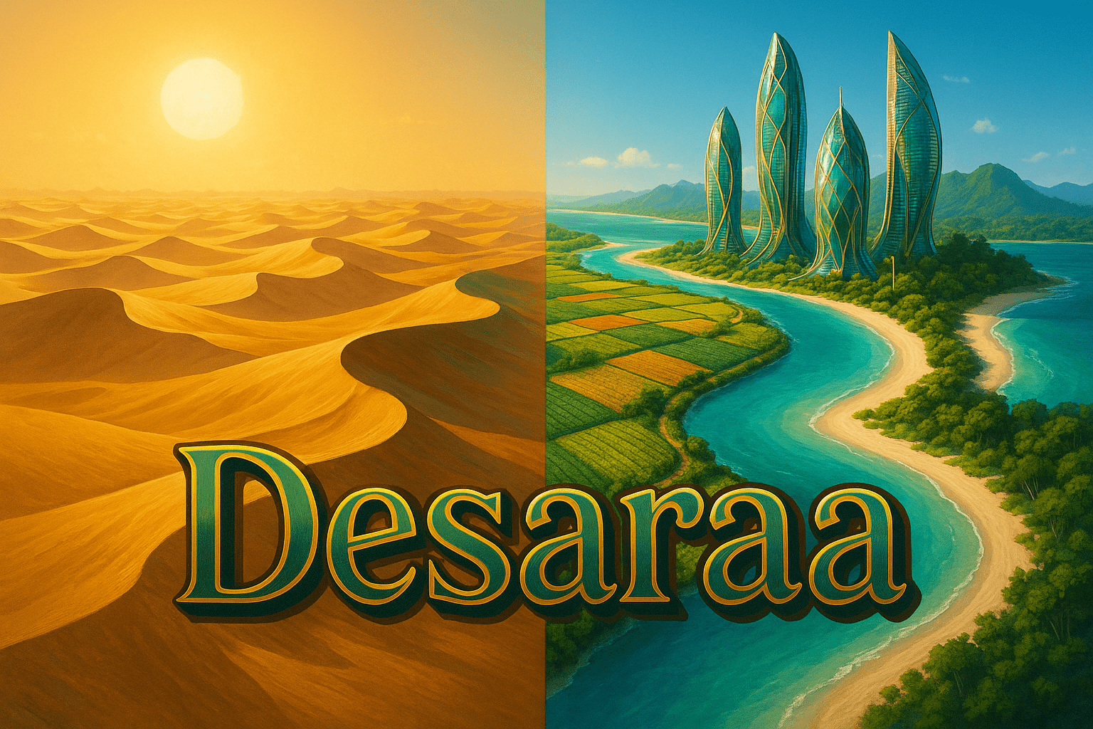 “In the heart of every barren desert lies a sleeping garden, a forgotten promise between Earth and time itself. With Desaraa, we are not simply reclaiming land, we are restoring the sacred dialogue between life and nature. We are planting hope where despair once grew, weaving intelligence into the soil, and transforming desolation into abundance.